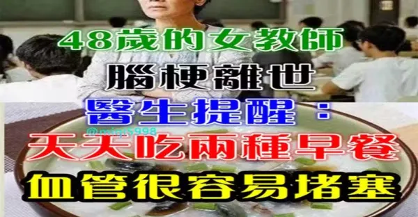 48歲女教師腦梗離世,醫生 :天天吃2種早餐 ,血管很容易堵塞!再不知道就晚了!