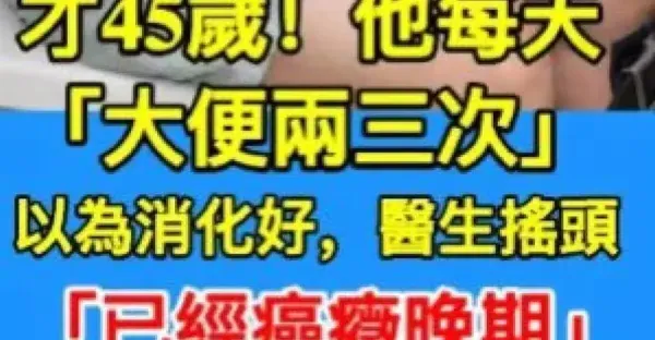 才45歲!他每天「大便兩三次」以為消化好,醫生搖頭「已經癌症晚期」,4個異常沒注意
