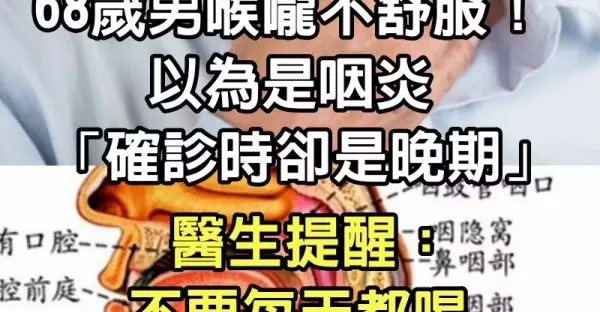 68歲男喉嚨不舒服!以為是咽炎「確診時卻是晚期」 醫生提醒:不要每天都喝「這種飲料了」