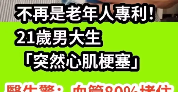 不再是老年人專利!21歲男大生「突然心肌梗塞」醫生驚:血管80%堵住 「致命菜單曝光」全是吃出來的