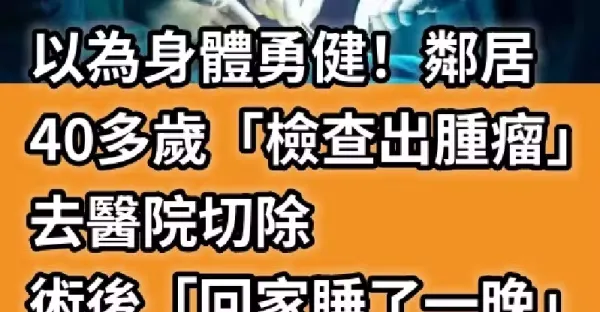 以為身體勇健!鄰居40多歲「檢查出腫瘤」去醫院切除 術後「回家睡了一晚」人卻沒了:臨終只留6字