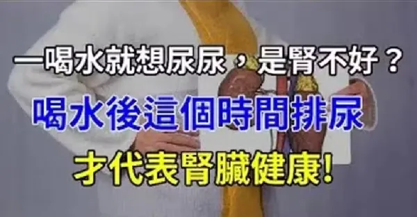 一喝水就想尿尿,是腎不好?喝水後這個時間排尿,才代表腎臟健康 !
