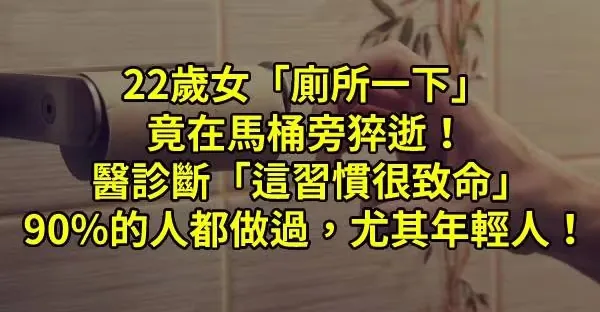 22歲女「廁所一下」竟在馬桶旁猝逝! 醫診斷「這習慣很致命」90%的人都做過,尤其年輕人