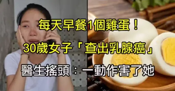 每天早餐1個雞蛋‼️30歲女子「查出乳腺癌」3個月後含淚離世 醫生搖頭:一動作害了她!