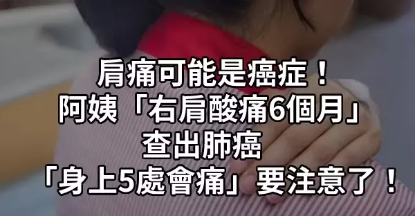 肩痛可能是癌症!阿姨「右肩酸痛6個月」查出肺癌 「身上5處會痛」要注意了