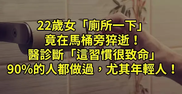 22歲女「廁所一下」竟在馬桶旁猝逝! 醫診斷「這習慣很致命」90%的人都做過,尤其年輕人!