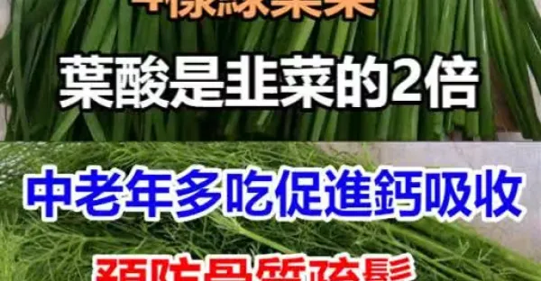 春天上市!4樣綠葉菜「葉酸是韭菜的2倍」中老年多吃「促進鈣吸收」預防骨質疏鬆:腿腳有勁精神好!