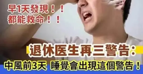 退休醫生再三警告: 中風前3天, 睡覺會出現這個訊號 ! 早1天發現都能救命, 可惜很多人都錯過了。