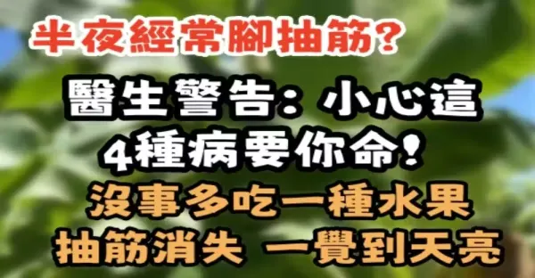 半夜經常腳抽筋?醫生警告:小心這4種病要你命!沒事多吃一種水果,抽筋消失一覺到天亮。