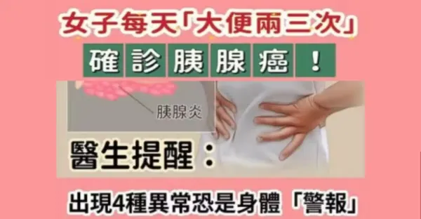 女子每天「大便兩三次」確診胰腺癌!醫生提醒:出現4種異常恐是身體「警報!」。