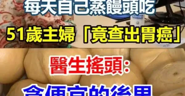 每天自己蒸饅頭吃!51歲家庭主婦「竟查出胃癌」醫生曝「這2物看似實惠」: 貪便宜的後果