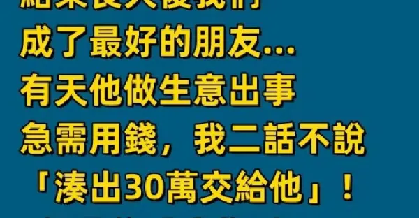我家很窮,家境優渥的同學從小一直幫助我!結果長大後我們成了最好的朋友…有天他做生意出事急需用錢,我二話不說「湊出30萬交給他」!3個月後「我收到一則轉賬紀錄」一看傻在原地