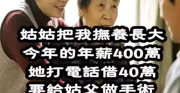 姑姑把我撫養長大!今年薪400萬「她打電話借40萬」給姑父做手術 我拒絕了被老婆質問「我告訴老婆真相」, 聽完後她沉默了...