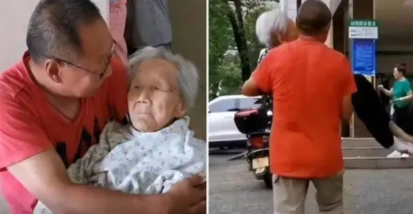 52歲兒子全程抱著101歲媽媽去看病,候診時聽媽媽一句話他當場淚崩:這是兒子的本分!