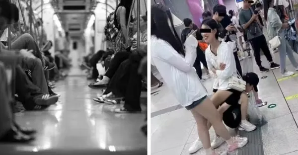女友等車腳痠!瘦弱男蹲地「當她的人肉座椅」奴隸畫面曝光 引網2派討論:「這種女生敢娶?」