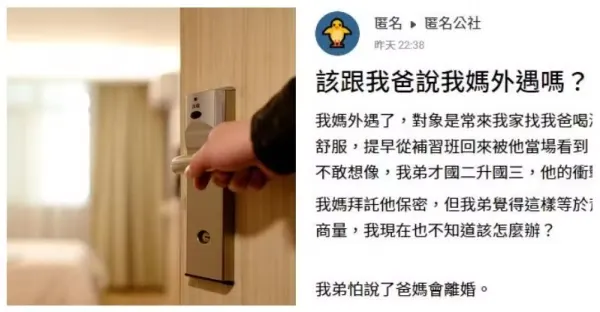 國中弟提早回家...意外撞見「媽媽和阿伯交纏」大崩潰 「猶豫跟爸說」反被威脅:敢講我就去死