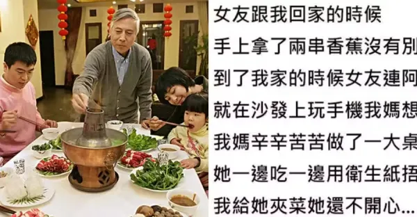 帶女友回家吃飯,媽媽不停用腳踢我「我低頭一看」當場提分手!