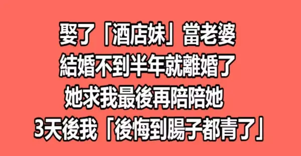 娶了「酒店妹」當老婆!結婚不到半年就失婚了,她求我最後再陪陪她,3天後我「後悔到腸子都青了」!