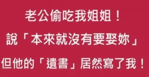 丈夫跟我姊姊外遇!他說「本來想娶的就是妳的姐姐」!失婚數十年後,丈夫過世,而他的遺書居然寫了我!…