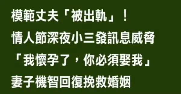 模範丈夫「被出軌」!情人節深夜小三發訊息威脅:「我懷孕了,你娶我」 妻子機智回復挽救婚姻!