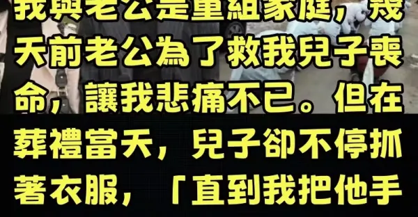 我與老公是重組家庭,幾天前老公為了救我兒子喪命,讓我悲痛不已。但在葬禮當天,兒子卻不停抓著衣服,「直到我把他手扯開後」,我直接把靈堂給砸了