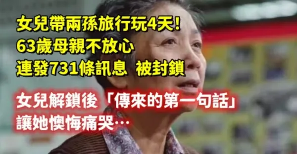 女兒帶兩孫旅行玩4天! 63歲母親不放心「連發731條訊息」被封鎖,女兒解鎖後「傳來的第一句話」讓她懊悔痛哭~