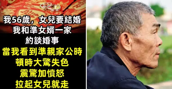 我56歲,女兒要結婚,我和准女婿一家約談婚事。當我看到准親家公時,頓時大驚失色,震驚加憤怒拉起女兒就走。
