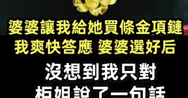 婆婆讓我給她買條金項鍊,我爽快答應,婆婆選好後,沒想到我只對櫃姐說了一句話,婆婆的臉色瞬間就變了