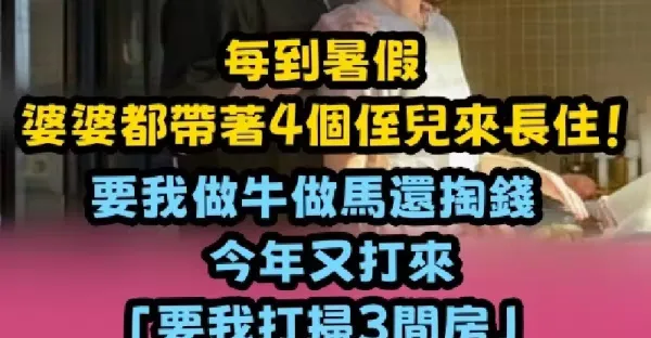 每到暑假,婆婆都帶著4個侄兒來長住!要我做牛做馬還掏錢,今年又打來「要我打掃3間房」女兒房間也要清出來,我默默「做一件事反擊」讓她氣得跳腳.