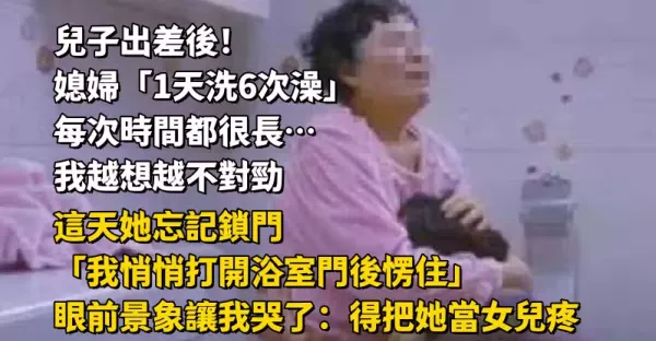 兒子出差後!媳婦「1天洗6次澡」每次時間都很長… 我越想越不對勁,這天她忘記鎖門「我悄悄打開浴室門後愣住」眼前景象讓我哭了:得把她當女兒疼~