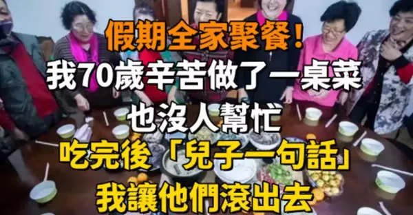 假期全家聚餐!我70歲辛苦「做了一桌菜」也沒人幫忙,吃完後「兒子一句話」我讓他們滾出去~