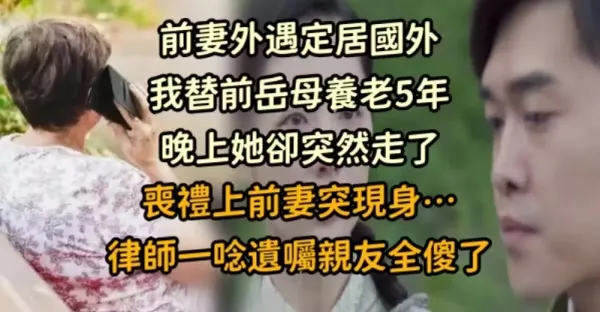 前妻外遇定居國外,我替前岳母養老5年,晚上她卻突然走了,喪禮上前妻突現身…律師一念遺囑親友全傻了…