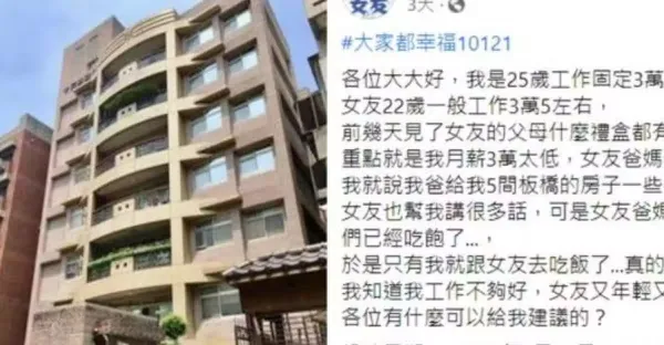 25歲薪水3萬!論及婚嫁「被女友爸媽嫌窮」…他霸氣喊「板橋有5間房」親家卻掉頭就走