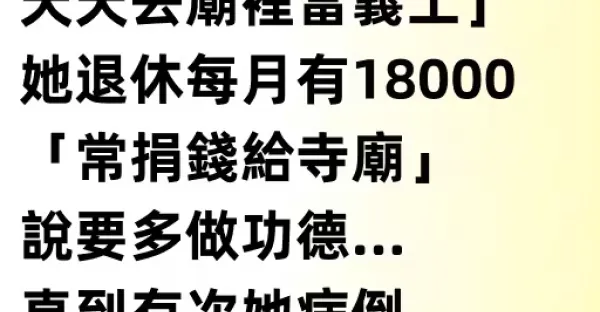 爸爸心梗走了!媽媽從此信佛更虔誠「退休後天天去廟裡當義工」,她退休每月有18000「常捐錢給寺廟」說要多做功德… 直到有次她病倒「付醫藥費時我一看她的帳戶」 當場腿軟了!