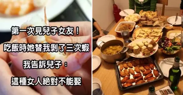 第一次見兒子女友!吃飯時「她替我剝了三次蝦」 我告訴兒子「這種女人絕對不能娶~」