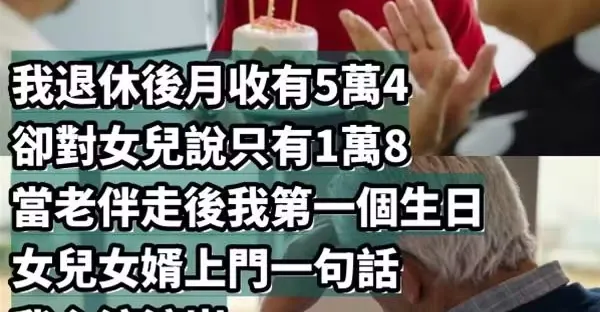 我退休後月收有5萬4卻對女兒說只有1萬8,當老伴走後我第一個生日,女兒女婿上門一句話,我心涼淚崩:多虧當初有瞞著~