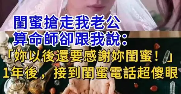 閨蜜搶走我老公!算命師卻跟我說:「妳以後還要感謝妳閨蜜!」1年後,接到閨蜜電話超傻眼~