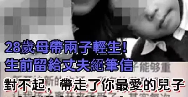 28歲母帶兩子輕生!生前留給丈夫絕筆信:「對不起,帶走了你最愛的兒子…」 「遺書道盡婆媳心酸」連尪也不挺!