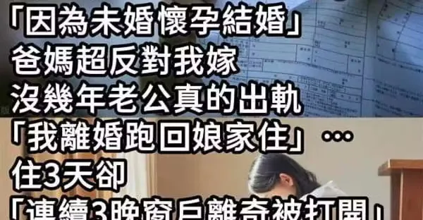 我當年「因為未婚懷孕結婚」爸媽超反對我嫁!沒幾年老公真的出軌「我失婚跑回娘家住」…住3天卻「連續3晚窗戶離奇被打開」!!第4晚我裝睡著「半夜偷偷張開眼睛」一看崩潰了…