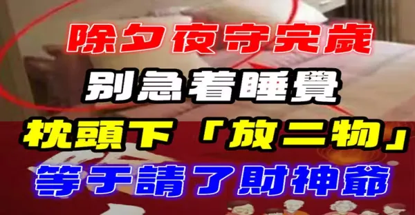 大年二十九除夕夜 守完歲別急著睡覺 枕頭底下「放二物」等於請了財神爺 來年財富翻80倍!