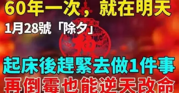 60年一次,就在明天早上!1月28號「除夕」,起床後趕緊去做1件事,再倒霉也能逆天改命!