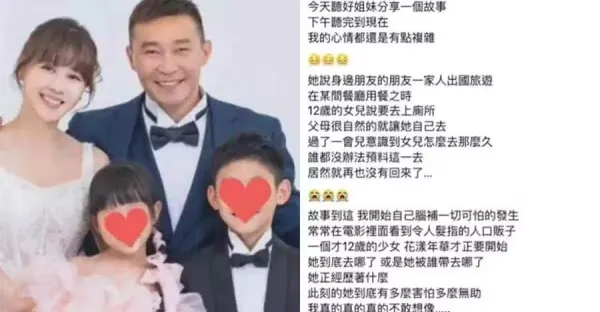 全家出國旅遊「12歲女兒去廁所後再也沒回來」 嚴立婷痛心:不要讓孩子離開視線…