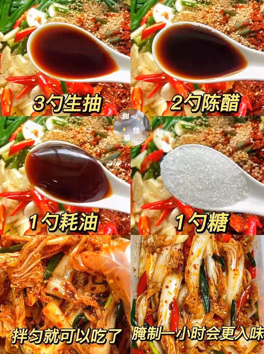 🌰材料:娃娃菜,小米辣,蔥,蒜,辣椒粉,陳醋,生抽,蚝油,糖,鹽