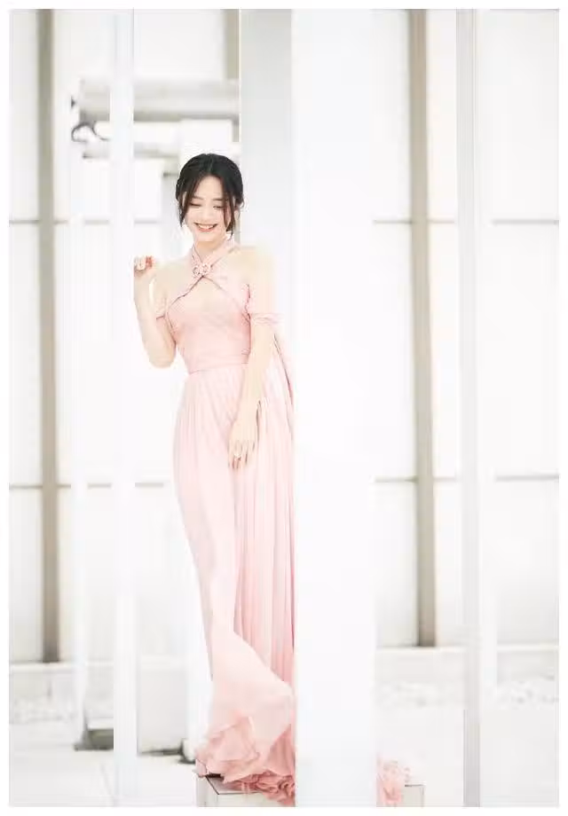 譚松韻身穿一襲夢幻粉長裙講述自己演藝之路的所感所想。