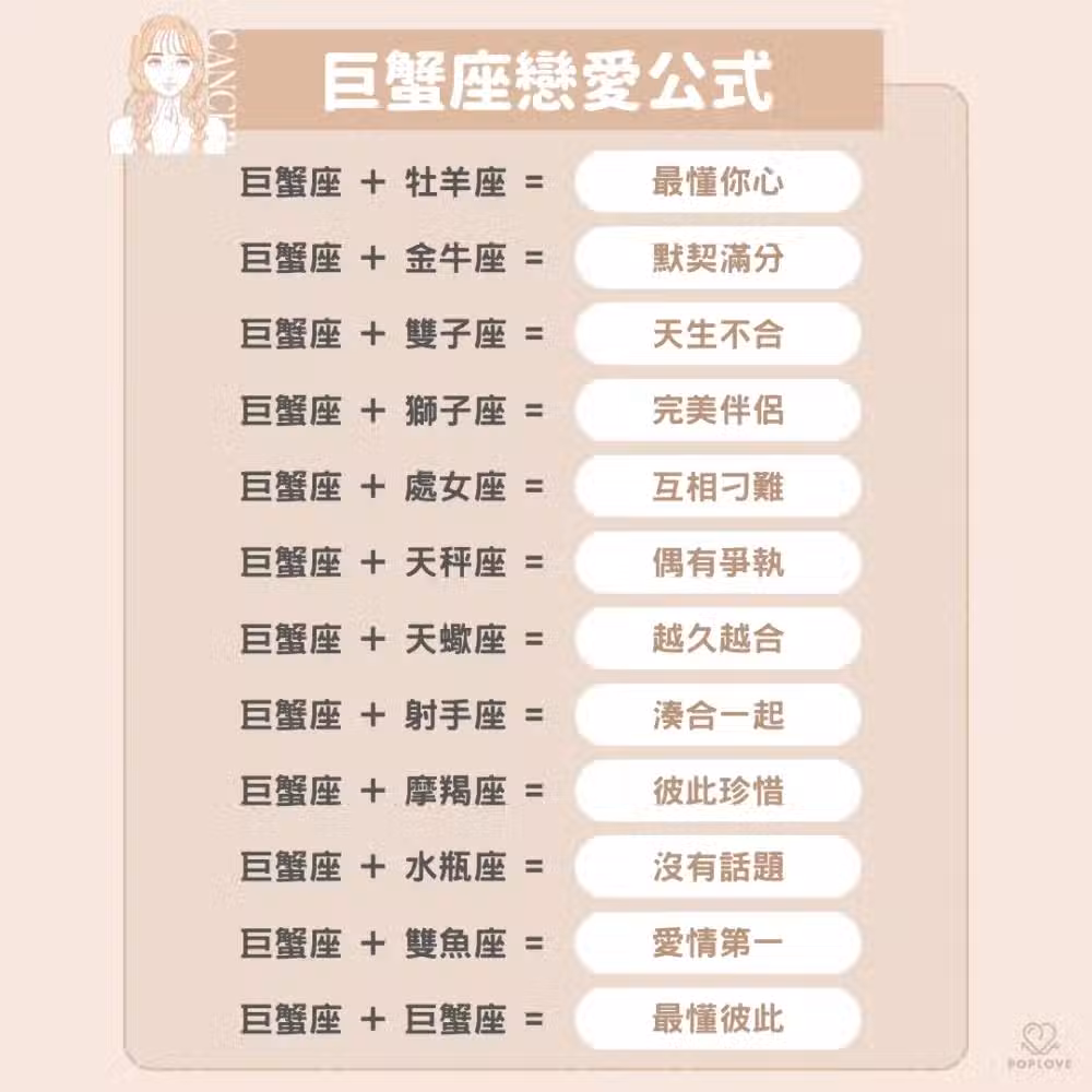 巨蟹座在很多人心中一直都扮演著溫暖別人照亮別人的角色,但在感情上的他們很缺乏安全感可望被愛和肯定。兩個巨蟹在一起就是最懂彼此的人,因為他們一定都會把家庭擺在第一位!
