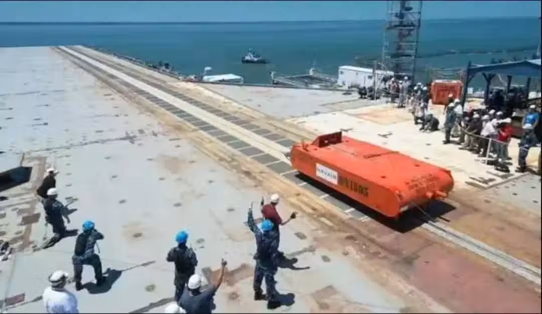 航母彈射小車試驗,是航空母艦海試之前必須要完成的一項工作。儘管艦用的電磁彈射系統在陸地上已進行數千次的艦載機彈射起飛試驗,儘管「福建」艦的電磁彈射系統是可靠的,但是陸地試驗無論怎麼逼真模擬,與航母上直接彈射也會有不可忽略的差別。因此在實際建造過程中,還需要在出海之前進行小車彈射試驗,將模擬了各種艦載機配重的小車彈射出去,並對電磁導視系統進行同步調試,才能具備出海試航的條件。