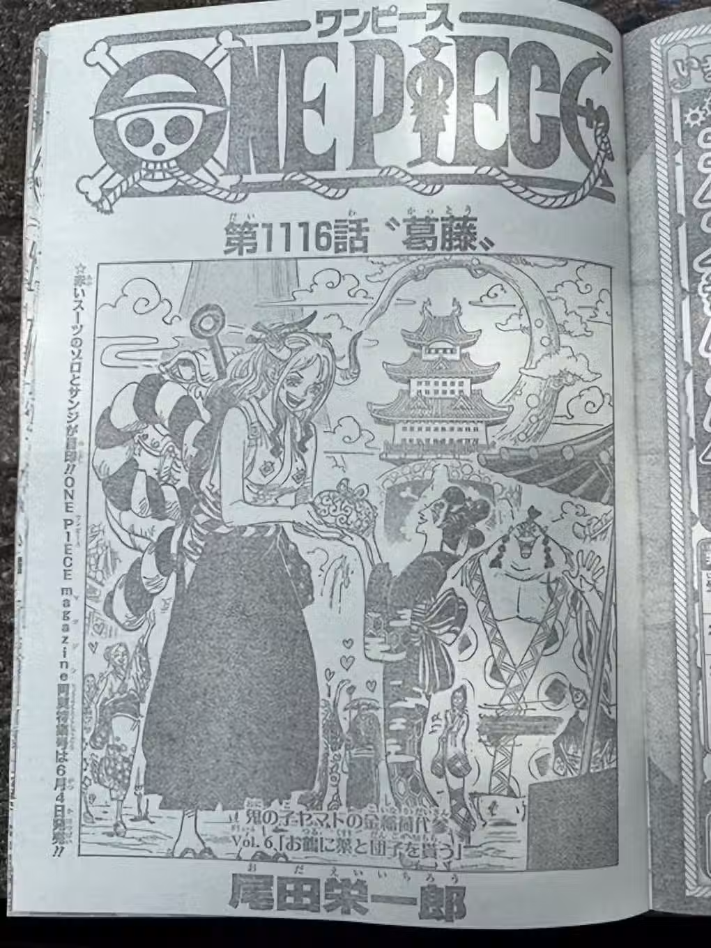 標題為"矛盾",從本話內容來判斷,這個矛盾指的是斯圖西。扉頁連載繼續和之國,在花之都城堡附近,錦衛門的老婆阿鶴出現,並給了大和藥物和團子,橫綱浦島也露面了,當初這傢伙和路飛相撲,被揍了一頓,還把小菊錯當成女的…
