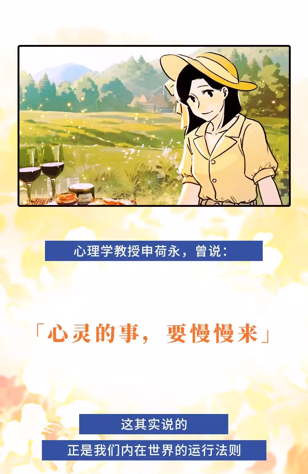寫在後面 本期漫畫的選題靈感,源於黃仕明老師的《停止一場你發起的內在戰爭》。 他在課程裡面講到說,在人類生命意識進化的進程中,有些事情的進展是如此緩慢,例如兩性關係的問題——什麼是親密?什麼是愛?如何讓去處理懷疑、背叛、傷害…… 這些問題在每一代人、每一段關係中都經歷著,而且,它們並沒有像科技發展那樣,日新月異,短短時間就獲得巨大進化。 因為內在成長療愈的過程是進展得如此緩慢。 內在的傷痛,這份難以承受的、嬌嫩的脆弱,它是不能蓋上效率這一頂帽子的。 就好比我們的傷口被完全打開,失去了保護,暴露於曠野和烈日之下,這反而會適得其反。 所以,越痛,越需要溫柔,輕柔地打開,慢慢地超越。 我也想邀請看到這裡的你,在內部世界裡,給自己更多的溫柔友善包容,告訴它: 「我看見你了。」 「我願意把憐憫和愛帶給你。」 「歡迎歡迎,歡迎你成為我生命的一部分。」 END.