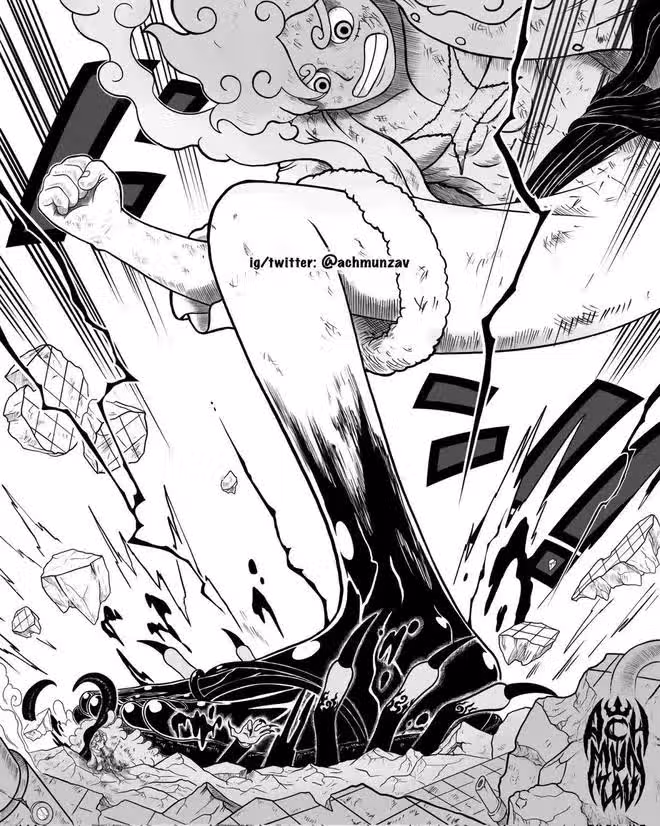 可是沒想到路飛這一邊看到是土星聖后,就改變了想法,因為一直被追也不是個辦法,需要先讓他們停下來,給大夥爭取逃跑的時間。為此路飛再一次開啟了巨人尼卡形態,釋放出超大的巨腳並纏繞霸氣,直接就踩爆了土星聖。