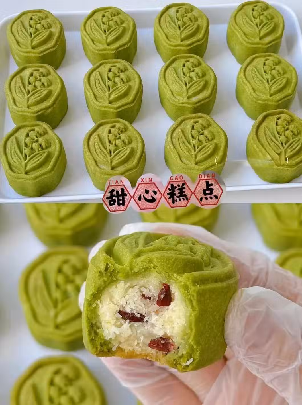 今天做了抹茶蔓越莓酥皮月餅,椰蓉香甜,蔓越莓酸甜,搭配上抹酥脆的抹茶曲奇外皮,真的太好吃了!